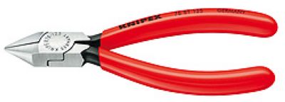 采用精密剪切刀口,适合剪切软线硬线,还适于剪切较细钢琴丝;重叠绞接;刀口硬度约为洛氏硬度63HRC;型 8:特殊的锥形头部带小偏刃,适合在较小的空间工作(用于剪切电缆线束和多股线);长度125,头部抛光,塑料套柄