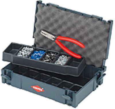 TANOS MINI-systainerTM包装(牢固的塑料盒体);两个可堆叠的塑料插入格,每个各六列,用于装连接端子;钳子97 61 145F,端子数量各300的70/71/72/73;200的74