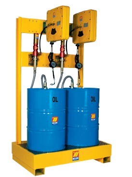 配有: 2个气动油泵(R=3:1bar) 带壁挂功能接油槽 2个10m,R1 1/2” 提油软管卷盘(带护壳) 2个墙装托架 2个920mm ?42mm提油管 2个2m ?1”软吸管 2个0.