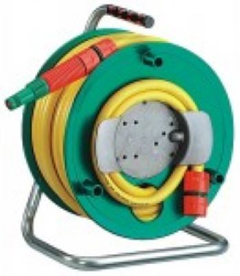 Special hose with textile inlay and spiral wound cross-weave. Flexible and pressure-resistant. With a spraying nozzle with waterstop and a top connector. Drum is made of special highly breakproof plastic. Strong carrying frame made of galvanized tubular s