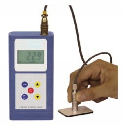 便携式,可替换的外置测头, 一个金属用测头,一个非金属用测头, 误差:±2.5μm 工作温度0°~50℃ 最小测量厚度0.3mm 最小测量面积6mm2